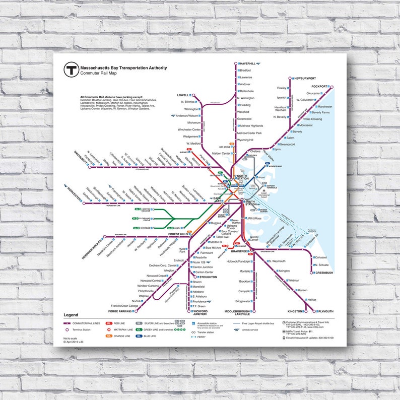 Large Boston Commuter Rail Map 24 X24 2019 Current Train T Map Subway Bus Rapid Mass Trasit