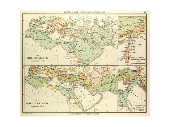 Map Of The Umayyad Caliphate Empire In 750 And The Islamic Empire In 1215 Giclee Print By Art Com