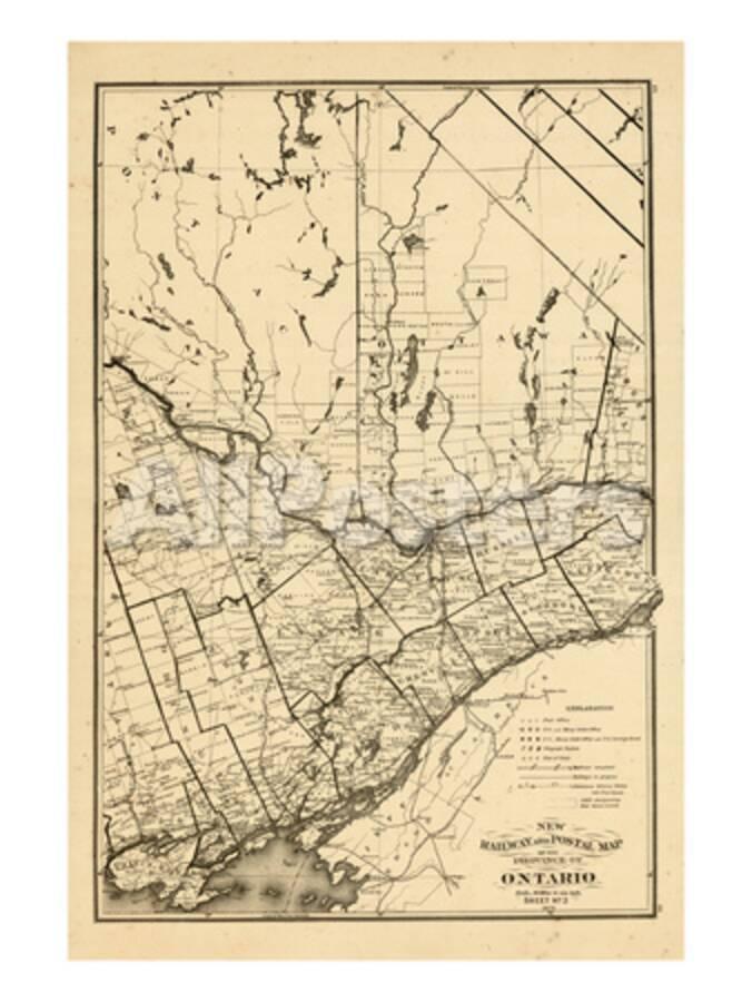 1876 Ontario Province Railway And Postal Map 3 Canada