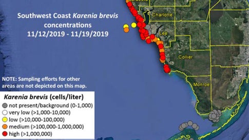 Red Tide Levels Jump In Southwest Florida The Weather Channel